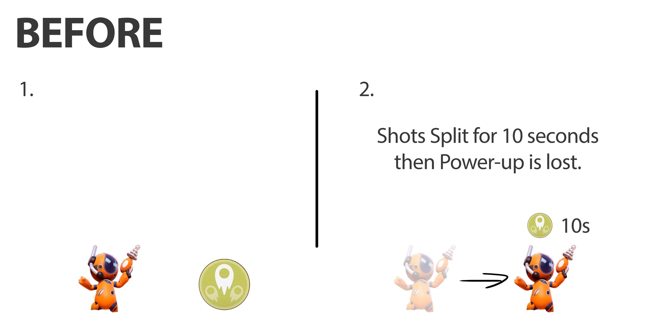 When collected, these power-ups would modify the behavior of the player’s attack.